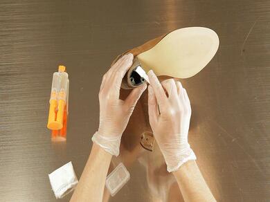 Вземете обувката и отлепения ток. Уверете се, че повърхностите са чисти, обезмаслени и сухи.