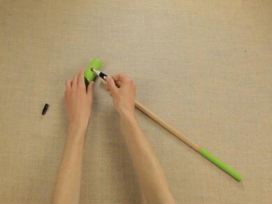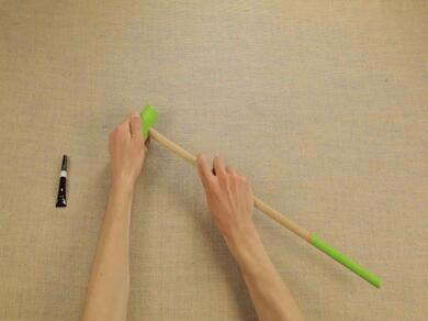 Поставете дръжката във вдлъбнатината, пълна с лепило, и внимателно натиснете двете части една върху друга.