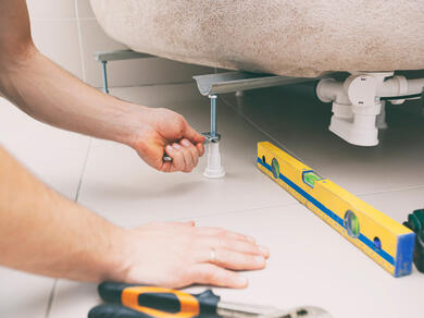 - Vodováhou ověřte, že je vana v rovině – jen tak zajistíte rovnoměrné rozložení vody při napouštění.