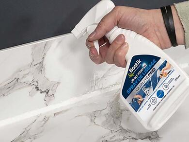 Při použití mýdla nebo prostředku na mytí nádobí se vystavujete riziku změny barvy. V praxi mohou zbytky těchto prostředků časem vést ke změně barvy povrchu spárovací hmoty a podkladu. S biologicky odbouratelným, bezbarvým a chemicky neutrálním finišerem Bostik Perfect Seal Dokončovací sprej se podobného rizika vyvarujete.