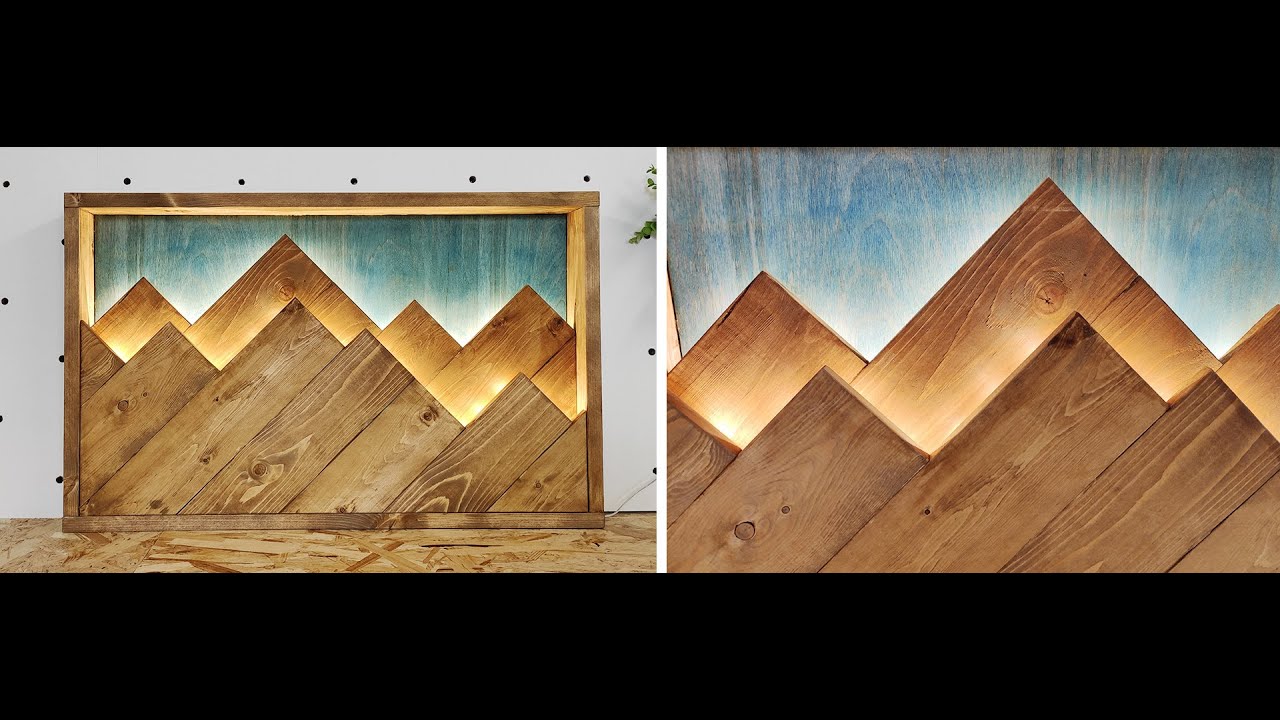 Στην αριστερή πλευρά του πίσω επιπέδου των βουνών κάντε ένα κόψιμο ώστε να μπορέσει να περάσει η ledοταινία. Κάντε ένα ακόμη κόψιμο στην κάτω πλευρά και 1 εκ. από πίσω στην κοντή τάβλα του κάδρου (40 εκ.) για να περάσει το καλώδιο. Γυαλοχαρτάρετε τα κοψίματα αλλά και όλη την επιφάνεια των βουνών. Καθαρίστε την σκόνη με ένα νωπό πανί.