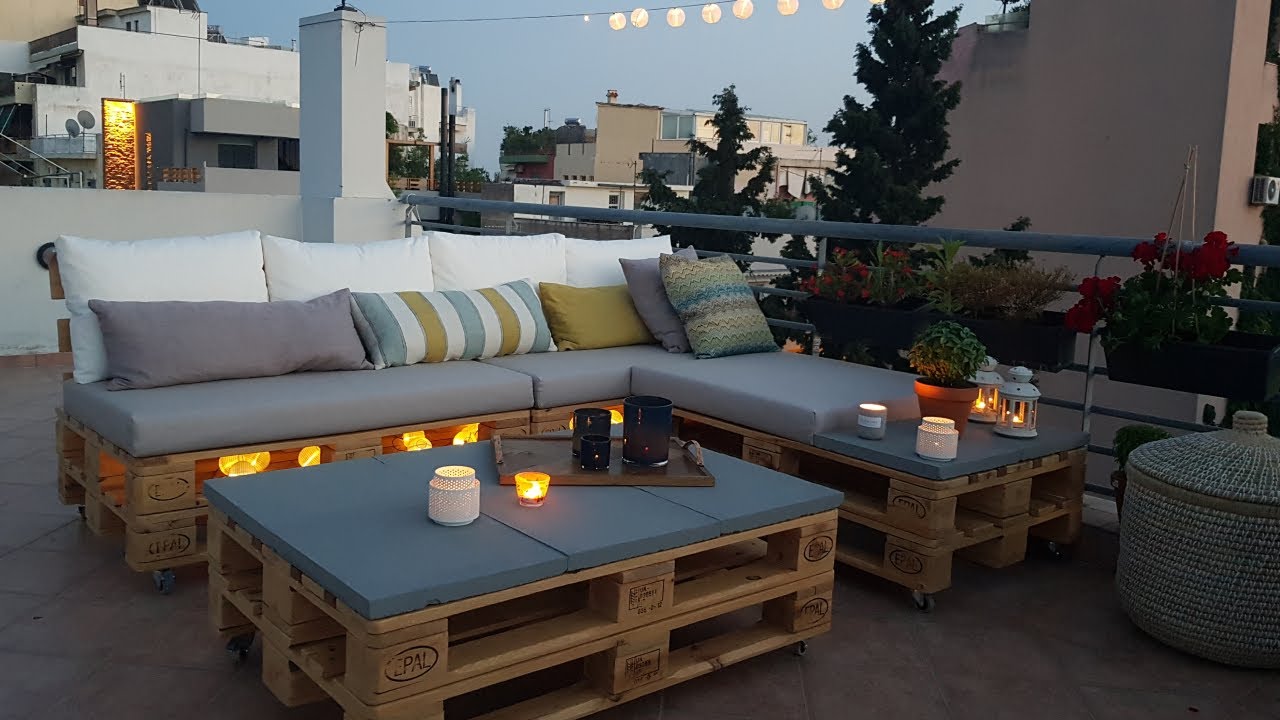 Γωνιακός καναπές & τραπέζι από παλέτες