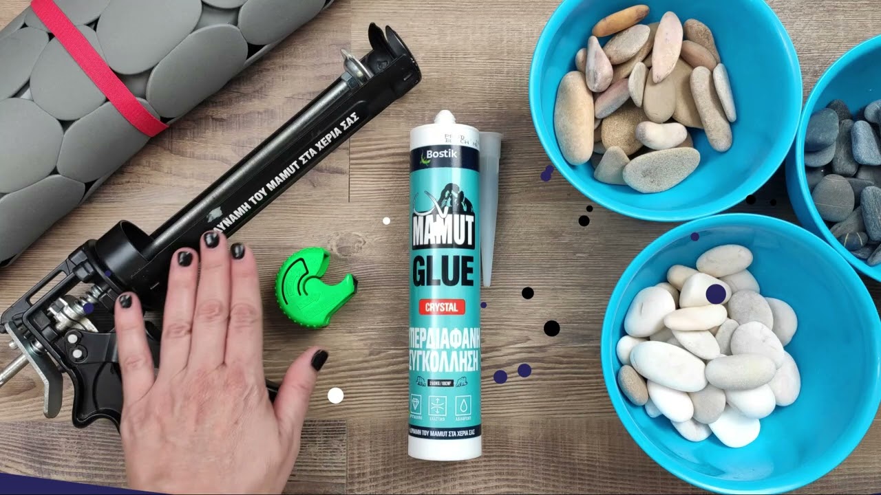 Ξεκινήστε διαλέγοντας τα πιο όμορφα και λεία βότσαλα, σε διάφορα μεγέθη και χρώματα. Στη συνέχεια, με τη βοήθεια ενός ανθεκτικού συγκολλητικού, όπως το Mamut Glue Crystal, τοποθετήστε τα βότσαλα σε ένα ανθεκτικό υπόστρωμα, όπως μια λαστιχένια βάση ή έναν παλιό τάπητα. Φροντίστε να τα κολλήσετε καλά, ώστε το πατάκι σας να είναι σταθερό και ανθεκτικό στη χρήση. Αυτό το πατάκι από βότσαλα είναι ιδανικό για την είσοδο του σπιτιού, το μπάνιο ή τον κήπο σας, προσθέτοντας μια φυσική και καλλιτεχνική πινελιά στον χώρο.