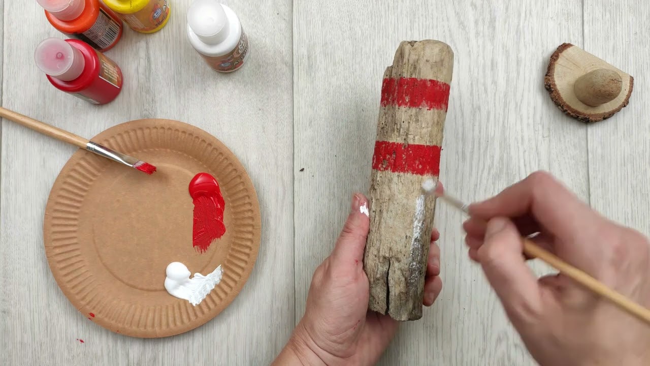 Δοκιμάστε να προσθέσετε χρώμα σε κάποια από τα ξύλα που επιλέξατε, θα δώσει ωραίο αποτέλεσμα. Χρησιμοποιήστε ακρυλικά με στεγνό πινέλο (χωρίς νερό δηλαδή) ώστε να δώσετε το παλαιωμένο ύφος.