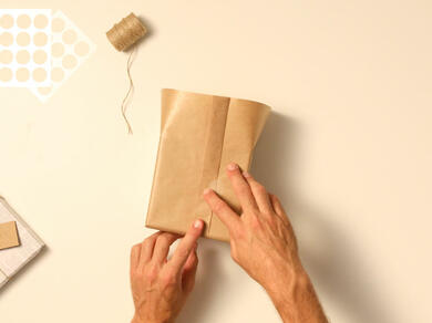 - Προσθέστε οπτικό ενδιαφέρον στο δώρο αναδιπλώνοντας δύο φορές τη μία πλευρά του καφέ χαρτιού.