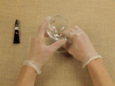 Place your wine glass with the mouth on a stable surface, make sure that the parts to be glued are clean and free of dust and grease. - Step 2: Get gluing