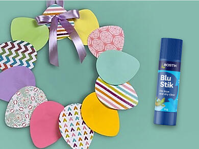 Welcome spring into your home with this delightful DIY Easter Garland, a perfect Easter décor project that’s fun and easy for all ages! Start by turning a paper plate into a sturdy frame by cutting out its centre, then trace and cut colourful egg shapes using the printable template and patterned paper. Glue the eggs around the rim using Bostik Cut ’n Paste, and add a ribbon bow at the top with Extra‑Strength Glu Dots for a polished finish. Hang it on your door or wall to instantly brighten your space and bring festive cheer. This hands-on, mess-free craft is ideal for family bonding, classroom activities, or setting the mood for Easter celebrations! 🌸🐣
