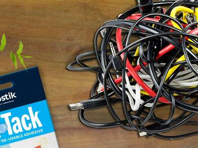 Stick the Blu-Tack shape to your table and use it as placeholder for your power cords. Repeat and apply to your other power cords!