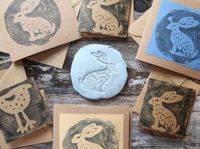 Press the paper or card down on to the coloured stamp and rub across its surface. If you are making cards, ensure you are printing the right way up!