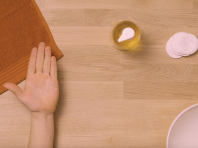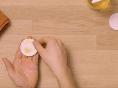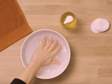 The next day, if some super glue is still on your skin, apply a mild food oil such as olive oil to a folded piece of kitchen paper or a cotton pad and gently rub it against the affected area. Then wash and dry your hands.