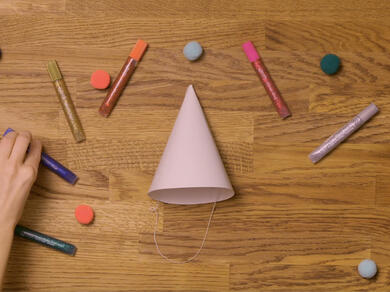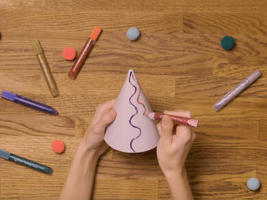 Use Bostik Glitter Glue pens to jazz up party ware like cardboard hats or paper tablecloths. You can even turn this glitter glue craft into a pre-party activity to build up the excitement or for younger children, use it as the main event to keep little ones busy.