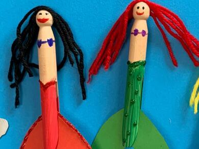 By upcycling wooden clothes pegs, you can quickly transform this everyday household item into a magical sea creature. Make your DIY mermaids swim in a sea of blue paper and add shells and sea jewels to really set the scene.