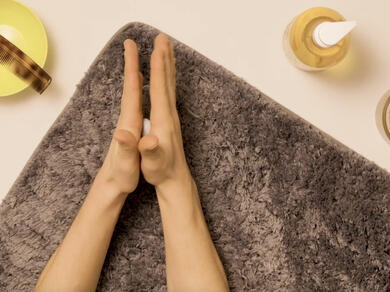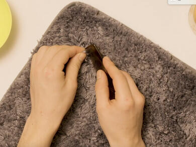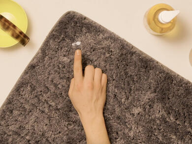 Tip: We recommend pinching the carpet strands with your fingers and trying to slide the Blu Tack® off the fabric. Take care not to squish the tack further into the carpet. Complete this motion several times to remove the bulk of the adhesive tack.