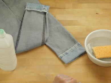 - Grab some stain remover or alternative acetone-based product. You'll want to create a small test patch in a hidden area on the clothing to ensure it won't cause any damage to the textile.