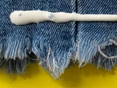 - Avoiding skin contact, apply a small amount of fabric glue to both surfaces and spread using the applicator.