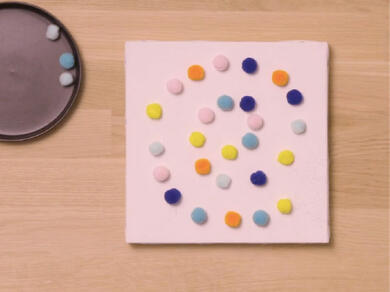 Take a small, square artists’ canvas and whatever materials inspire you, it might be colourful badges, buttons or ribbons – or natural materials like tiny shells, dried flowers or leaves. Spend a little time arranging them on the canvas and then lift each one to add a dot of glue to the canvas underneath from the Bostik Handy Hot Melt Glue Gun. Then press each object into place. And voila, your very own miniature work of art!