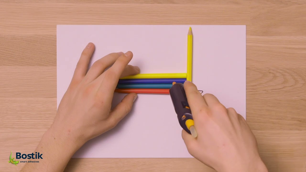 Get playful with your glue gun - choose a selection of your favourite shades of colouring pencil and carefully position them in a row. Use the Bostik Handy Hot Melt Glue Gun to place two or three lines of glue across the row of pencils to join them – going back and forth to create thick lines of glue. And you’ve created some colourful fun!