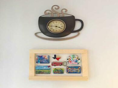 Stick it on the wall, on the spot you want to conceal. With those cute travel magnets framed, there’s no more eyesore with No More Nails!