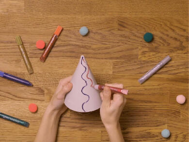 Use Bostik Glitter Glue pens to jazz up party ware like cardboard hats or paper tablecloths. You can even turn it into a party activity to keep little ones busy. Think simple spots and stripes – or you could use glitter glue to attach plastic gems, creating crowns perfect for a birthday princess.