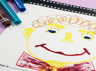 Colour in frame. Personalise and decorate your portrait using a range of materials, including Glitter Glue and sequins.