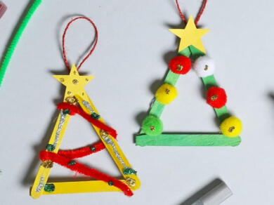 Deck your tree with heartfelt charm using this delightful DIY Christmas tree ornaments tutorial! Start by gluing three colourful icy-pole sticks into a triangle base with your Bostik Hot Melt Glue Gun, then secure a loop of yarn at the top for easy hanging. Add a star at the peak using yellow or gold paper, and let your creativity shine by decorating the edges with Glitter Glue and pom-poms for extra festive flair. These handmade ornaments are easy, fun, and perfect for family crafting time, classroom activities, or gifting. With simple supplies, popsicle sticks, yarn, glitter, and glue, you can create cheerful keepsakes that add warmth and sparkle to your holiday décor. 🎄✂️✨