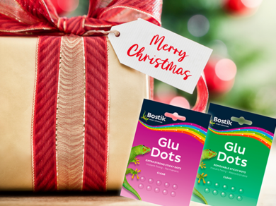 - Step two – Start wrapping your presents and seal together use the Bostik Glu Dots