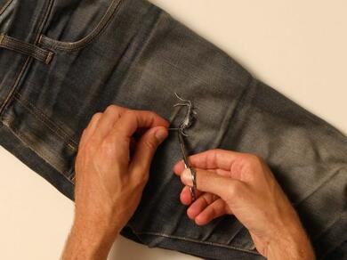 You should also ensure that the fabrics to be bonded are clean and dry. Trim away any stray threads or fibres from the ripped area of the jeans.