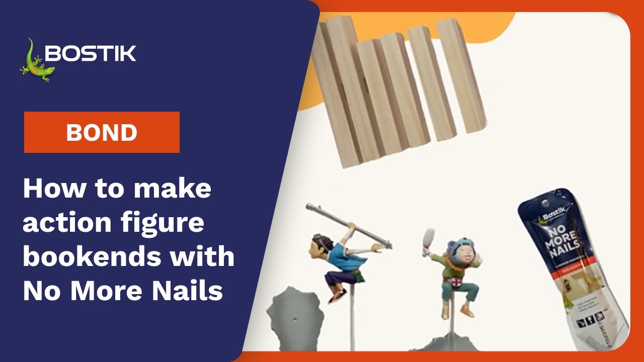 Show off your favorite figures while keeping your shelf tidy with this clever DIY Action Figure Bookends📚 project! Start by crafting "T"-shaped wooden bases using small planks bonded together securely with Bostik No More Nails. Once they’re set, thoughtfully arrange your action figures atop the base, then attach each by applying adhesive beneath their feet. Press down gently and let them bond, within 30 minutes, your one-of-a-kind, themed bookends will be durable enough for daily use!