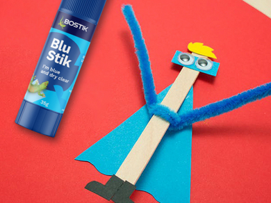 We think it’s Bostik Blu Stick, it’s the perfect ready to use, easy to apply, high quality solid glue stick. It’s CE approved, odourless and solvent-free, so it’s brilliant for adults and children alike. It's ideal for use on most paper-based materials including card, paper, crepe, tissue paper and photographs, as well as fabrics like felt and cotton. But what makes Bostik Blu Stick really unique is it goes on blue, so you can see exactly where you're sticking, before it dries clear, helping you to glue more efficiently and avoid any mess – it’s a crafting miracle