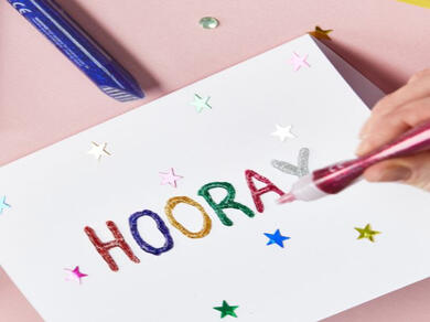 Our Glitter Glu pens are the ideal way to add sparkle to cards, pictures, posters, party stuff and more - without the mess! The glitter is suspended inside the glue so unlike loose glitter, your sparkles stay exactly where you've applied them. Plus, for accidental messes on clothes or other fabrics, our glitter glues can even be washed out.