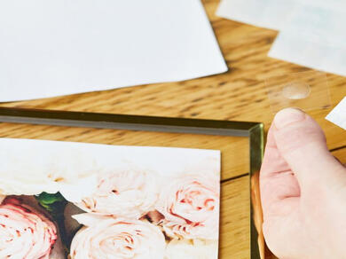 - Press the Glu Dot firmly onto the item to be bonded and then slowly and carefully peel off the clear backing.