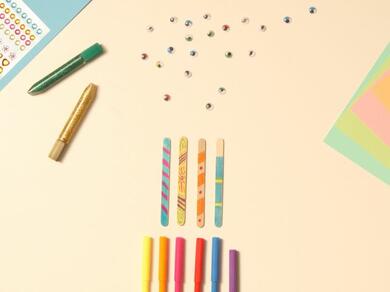 Use felt pens to turn a plain lolly stick into the body of a colourful monster – this is the time to let your creativity run wild.