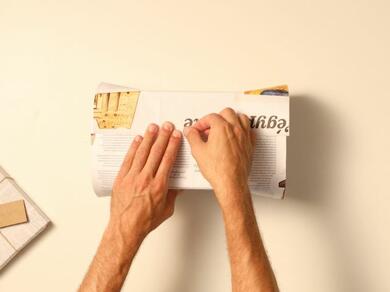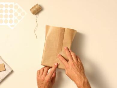 2. Add visual appeal to the gift by folding one side of the brown paper twice.