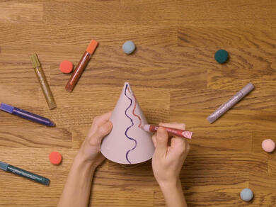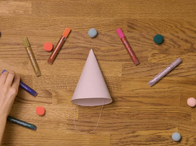Use Bostik Glitter Glue pens to jazz up party ware like cardboard hats or paper tablecloths. You can even turn this glitter glue craft into a pre-party activity to build up the excitement or for younger children, use it as the main event to keep little ones busy.