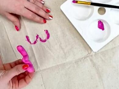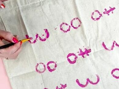 Now you've painted your diy stamp, it's time to make your custom tote bag. Press the Blu Tack® onto the bag so that the paint transfers onto the fabric.