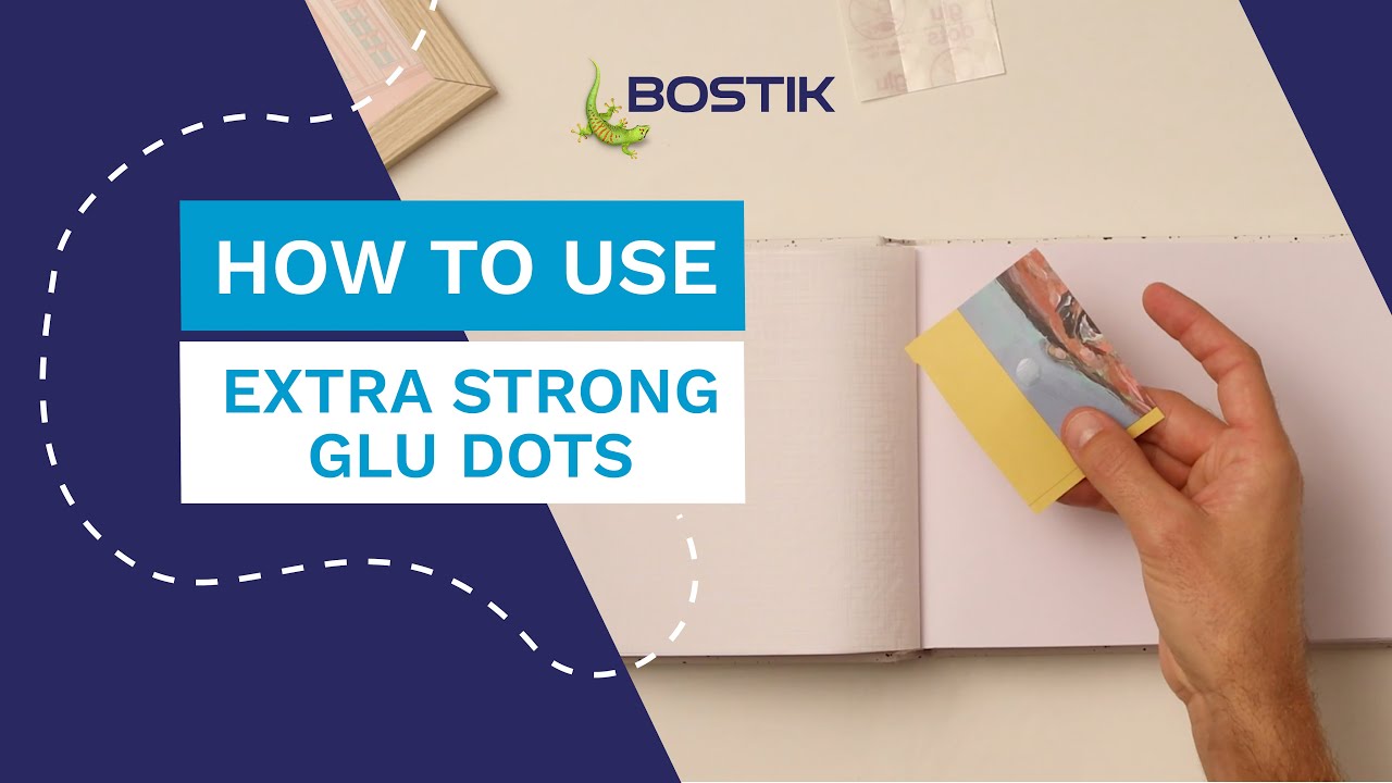 Bostik Extra Strong Glu Dots are circles of clear, strong glue that stick to almost anything including paper, wood, plastic, foam, metal, glass and painted surfaces.