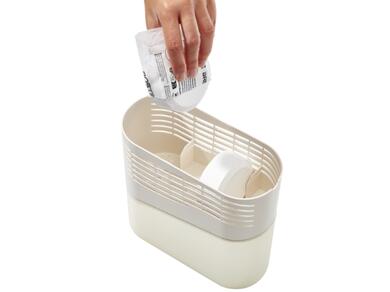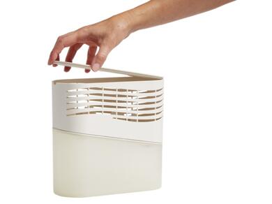 - To empty the moisture absorber, first, remove the upper compartment by gently lifting it up from the lower compartment.