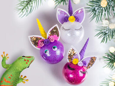Add a touch of whimsical sparkle to your tree with this DIY Unicorn Christmas bauble craft—where glamour meets magic! 🦄✨ Simply fill a transparent bauble with glitter, sculpt a unicorn horn using Bostik Crazy Clay, then decorate with paper roses and ears and secure everything with Clear Gel Adhesive for a fairytale finish. These enchanting baubles are perfect for holiday décor, gift embellishments, or festive crafting sessions with loved ones.