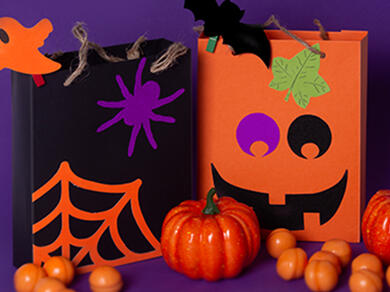 Print & cut the party bag out on your black & orange papers (black on black works).