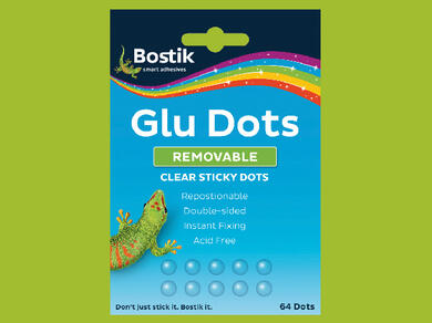 Bostik Prestik sticks extremely well to non-porous surfaces such as metal, glass, plastics, vinyl coated and painted surfaces. Also sticks well to porous surfaces such as paper, boards, cloth and wood.