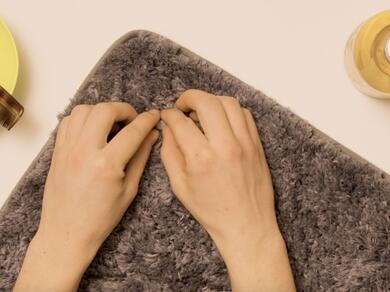 Wskazówka: Chwyć palcami włókna dywanu i spróbuj delikatnie zsunąć masę klejącą z materiału. Uważaj, aby nie wcisnąć jej jeszcze głębiej w dywan. Powtórz czynność kilka razy, aby usunąć większość masy.