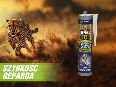 Gepard Glue to innowacyjny, jednoskładnikowy klej montażowy na bazie hybrydowej technologii HD POLYMER, który charakteryzuje się super szybkim wiązaniem. Dzięki temu klej hybrydowy Bostik osiąga pełną wytrzymałość w zaledwie 60 minut od aplikacji – to aż 24 razy szybszy czas wiązania niż u innych produktów na rynku. Idealnie sprawdzi się w wszelkiego rodzaju pracach, które wymagają nie tylko precyzyjnego montażu, ale i szybkości działania.