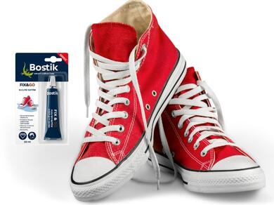 Kolejną interesującą propozycją w katalogu klejów naprawczych Bostik jest Fix&Go. Po aplikacji, ten super mocny klej do butów tworzy mocną i co ważne bezbarwną spoinę, która dodatkowo jest elastyczna, co jest ważne w przypadku naprawy obuwia, które przecież nieustannie „pracuje” podczas chodzenia. Warto dodać, że po utwardzeniu spoina jest odporna na wodę, śnieg, czy deszcz, a także promieniowanie UV oraz temperaturę. Nasz najmocniejszy klej do butów Bostik Fix&Go nie zawiera szkodliwych substancji takich jak toluen i cykloheksan, a ponadto jest produktem uniwersalnym, który bez problemu zaaplikujecie na różne rodzaje materiałów. Buty wyjściowe ze skóry, obuwie na co dzień ze skaju lub gumy, a także buty z tkanin powlekanych oraz elementy, które mogą znaleźć się w obuwiu, takie jak filc czy drewno, z łatwością sklei klej błyskawiczny Fix&Go. Znakomite właściwości użytkowe, łatwa aplikacja oraz uniwersalność to właśnie największe zalety mocnego kleju do butów Bostik Fix&Go. Klejenie butów jeszcze nigdy nie było tak proste i szybkie, co więcej oprócz butów skórzanych, czy adidasów, nasz klej umożliwi Wam naprawę ulubionych butów trekkingowych, a te jak wiadomo, nie należą do najtańszych, więc warto je naprawić, niż kupować nową parę. Jak zawsze w przypadku aplikacji kleju należy pamiętać o tym, by klejona powierzchnia była sucha i czysta.