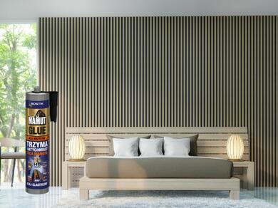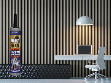 Jaki klej spełnia wymienione wyżej wymagania? Nasza propozycja to Mamut Glue, czyli nasz uniwersalny klej montażowy i budowlany. To neutralny i niekorozyjny klej odpowiedni do rozmaitych elementów wykończeniowych, w tym ściany z lamelami. Dzięki temu, że zapewnia wytrzymałe wiązanie oraz nie wymaga podpierania, pomoże w szybkim i bezproblemowym montażu lameli.