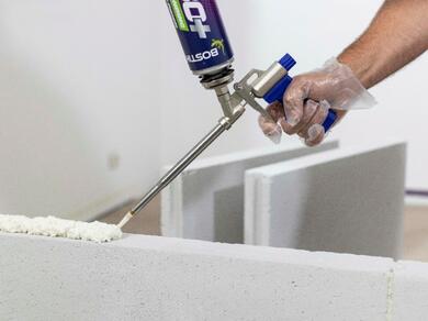 Jeśli mówimy o pianoklejach, Bostik Turbo+ jest prawdziwie wielozadaniowym produktem, który świetnie sprawdzi się jako pianoklej do styropianu, do murowania ścian działowych z bloczków, montażu parapetów czy instalacji płyt g-k. Czas otwarty to zaledwie 2,5 min, chwyt początkowy po około 60 sekundach, a pełne utwardzenie w mniej niż 70 minut. Dodatkowo produkt zapewnia doskonałą izolację termiczną, co czyni go idealnym rozwiązaniem przy montażu okien, drzwi czy elementów fasadowych. Murowanie na pianoklej z Bostik Turbo+ to doskonała alternatywa dla tradycyjnych zapraw murarskich. Praca z tym pianoklejem to oszczędność czasu i doskonałe efekty. Szukasz inspiracji? Polecamy nasz artykuł o wyrównaniu ścian z użyciem płyt GK i pianokleju TURBO+.