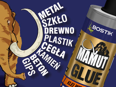 Klej montażowy elastyczny o natychmiastowym chwycie. Mamut - klej montażowy uniwersalny sprawdza się przy klejeniu rozmaitych materiałów budowlanych i elementów wykończeniowych. W szczególności do ciężkich, mocno obciążonych lub wielkogabarytowych elementów, takich jak: okładziny, blaty, półki, ramy, lustra, fronty, parapety, gzymsy, progi, materiały izolacyjne, maskownice, obudowy, tablice, ekrany, panele ścienne, listwy wykończeniowe, konstrukcje stalowe itp. Mamut Glue - klej ten może być używany w kombinacji z podłożami suchymi i lekko wilgotnymi oraz do przyklejania materiałów dekarskich, np. blacha, dachówki ceramiczne, cementowe.