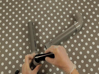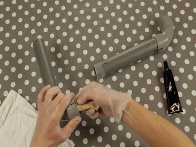 Aplicați adezivul atât pe partea goală a unei țevi, cât și pe manșonul celeilalte. - Pasul 4: Asamblează