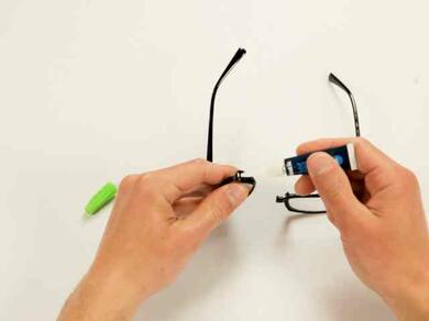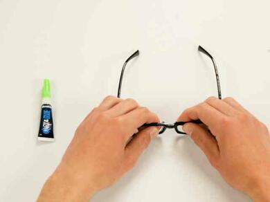 Соедините две части сломанных очков между собой. - Шаг 4: Склеивание