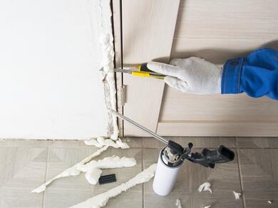 - Aplikácia peny - Po obvode osadenej zárubne aplikujte nízkoexpanznú montážnu penu, napríklad Perfect Seal Okná a dvere od Bostik. Nechajte vytvrdnúť podľa inštrukcií na obale. Zvyšok peny opatrne orežte.