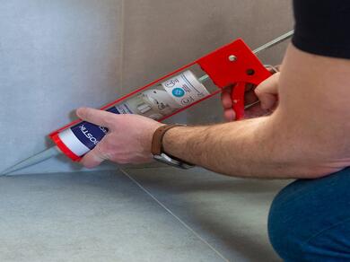 - Na ukončenie medzier pri stenách, vani či inej sanite použite sanitárny silikónový tmel určený na kúpeľne.